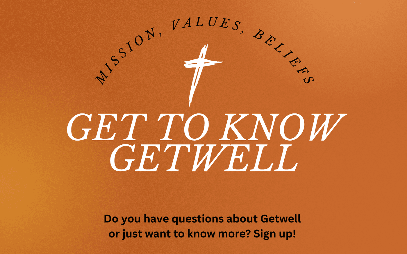 Learn about Getwell’s beliefs, leadership, ways to connect and serve, as well as where we’ve been and where we’re headed! Please register to let us know you’re planning to attend.